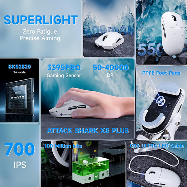 ATTACK SHARK X8PLUS (White) : une précision renforcée pour le jeu compétitif